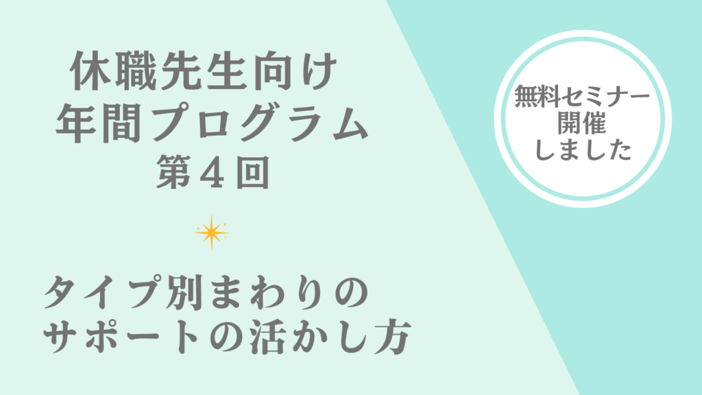 【実施報告】休職先生セミナー~タイプ別まわりのサポートの活かし方