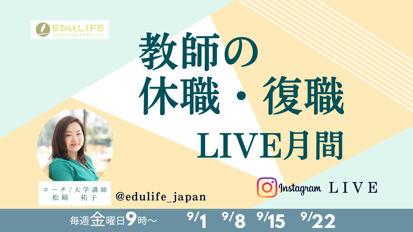 9月の毎週金曜日、朝9時からEDULIFEのインスタグラムアカウントにてライブを行います。