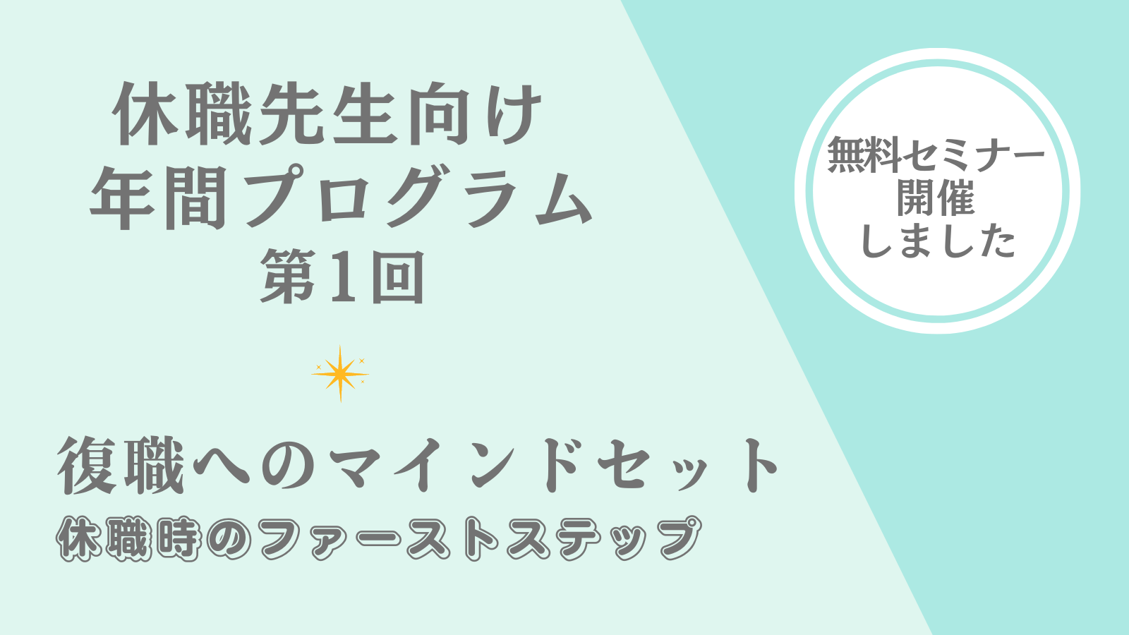 第一回目のテーマは、「復職へのマインドセット 休職時のファーストステップ」。